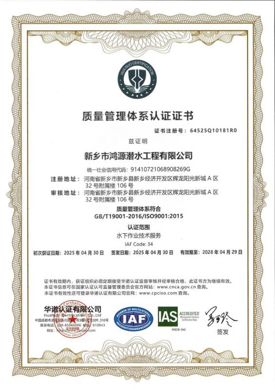 新鄉(xiāng)市鴻源潛水工程有限公司,有從事潛水行業(yè)二十多年的潛水團(tuán)隊(duì)。公司具有獨(dú)立法人資格,注冊(cè)資金600萬(wàn)元。   公司的潛水人員、潛水檢測(cè)人員、潛水焊接人員均經(jīng)過(guò)正規(guī)培訓(xùn),全部持有國(guó)內(nèi)權(quán)威機(jī)構(gòu)頒發(fā)的資質(zhì)證書(shū)。我公司水下焊接可靠,質(zhì)量?jī)?yōu)良,技術(shù)過(guò)硬,可水下焊接鋼管樁,水下焊接犧牲陽(yáng)極鋅塊,水下焊接連接梁,水下封堵焊接等等施工,報(bào)價(jià)合理,拒絕暴利,竭誠(chéng)為您服務(wù)!水下電焊工程,水下電焊報(bào)價(jià)合理水廠電廠的水池、水道清淤、泵房清理、管道鋪放、攔污柵清污、更換閘門(mén)起落、導(dǎo)流洞、水庫(kù)壩體等維修施工水下補(bǔ)強(qiáng)加固:對(duì)水利電力系統(tǒng)水庫(kù)、大壩及沿海內(nèi)河港口、碼頭等水工建筑物水下鋼結(jié)構(gòu)或混凝土結(jié)構(gòu)缺陷進(jìn)行。無(wú)論是對(duì)現(xiàn)在或?qū)?lái),都將是一項(xiàng)非常有意義的工作。水下焊接將成為水下作業(yè),水下安裝,水下維修等水下作業(yè)工程中不可或缺的重要工藝手段.公司堅(jiān)持“先進(jìn)的技術(shù)設(shè)備.優(yōu)質(zhì)的服務(wù)質(zhì)量.服務(wù)效率.熱情的服務(wù)態(tài)度,為生產(chǎn)經(jīng)營(yíng)理念,以拒絕暴利合理收費(fèi)為原則立足全國(guó)市場(chǎng)。我們將以優(yōu)質(zhì)的產(chǎn)品與售后服務(wù)來(lái)打造用戶良好體驗(yàn)。愿同新老客戶竭誠(chéng)合作、互惠互利、共創(chuàng)輝煌!水下電焊工程,水下電焊報(bào)價(jià)合理,鋼圍堰清淤公司鴻源-水下電焊工程,水下電焊報(bào)價(jià)合理,鋼圍堰清淤公司,水下電焊工程。      新鄉(xiāng)市鴻源潛水工程有限公司我公司成功打造鴻源優(yōu)質(zhì)服務(wù)。公司的潛水人員、潛水檢測(cè)人員、潛水焊接人員均經(jīng)過(guò)正規(guī)培訓(xùn),全部持有國(guó)內(nèi)權(quán)威機(jī)構(gòu)頒發(fā)的資質(zhì)證書(shū)。經(jīng)過(guò)多年經(jīng)營(yíng),公司具備公司具有獨(dú)立法人資格。